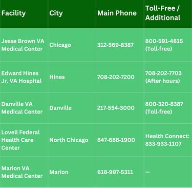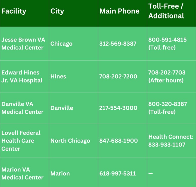 Call: [Nearest VAMC main number — e.g., Jesse Brown VA Medical Center: 312-569-8387] Say:
